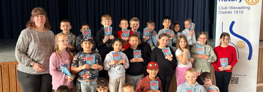 Besonders schön ist, dass jedes Kind nun ein eigenes Exemplar des Buches besitzt und dieses auch mit nach Hause nehmen kann. Unser herzlicher Dank gilt dem Rotary Club Wesseling!