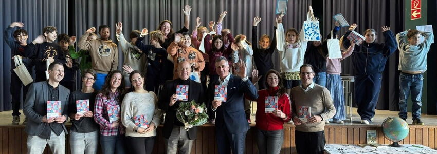 Die Abschlussveranstaltung des Projekts fand jetzt in der Aula der Johannes-Gutenberg-Schule statt. Dort hatten die jungen Autorinnen und Autoren die Gelegenheit, dem Publikum ihre selbstverfassten Werke aus ihrem Buch „Wor(l)d of Wesseling“ zu präsentieren und gemeinsam den erfolgreichen Abschluss einer spannenden Reise in die Welt der Wörter, Gedanken und Geschichten zu feiern.