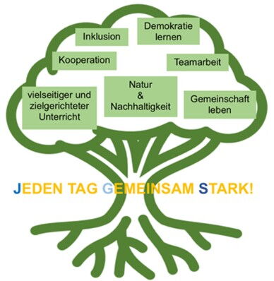 Unter dem Leitspruch: „Jeden Tag gemeinsam stark!“ unterrichten wir etwa 300 Kindern aus 24 Nationen. Wir sind eine Schule für alle Kinder. Wir leben und lieben die Vielfalt der Menschen an unserer Schule und die Kolleg:innen begleiten die Kinder auf ihrem Weg zu achtsamen und wertschätzenden Individuen.